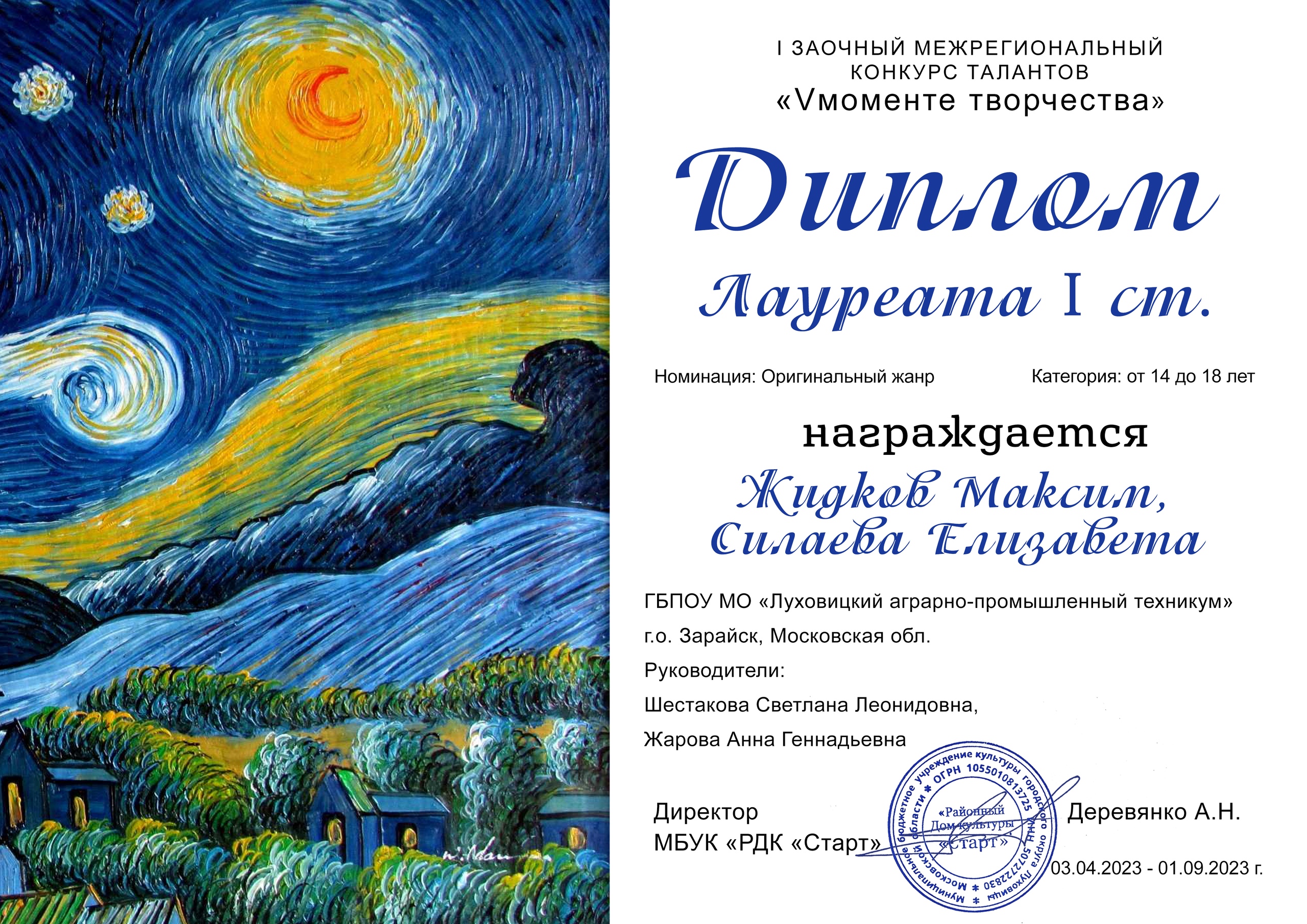 Студенты аграрно-промышленного техникума приняли участие в I межрегиональном конкурсе талантов «Vмоменте творчества» и заняли почетное 1 место в номинации «Оригинальный жанр».