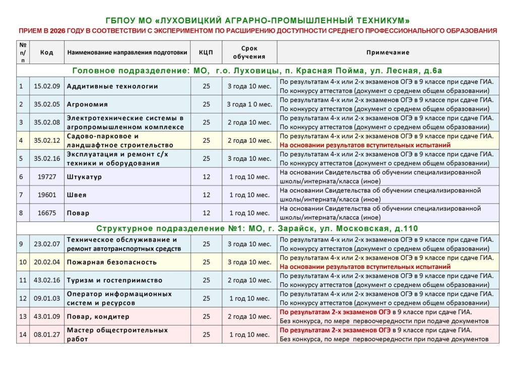 Подробная информация на сайте техникума в разделе «Абитуриенту»: