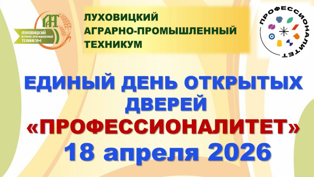 18 апреля 2026 года с 10.00 часов в Луховицком аграрно-промышленном техникуме состоится Единый день открытых дверей «Профессионалитет»!