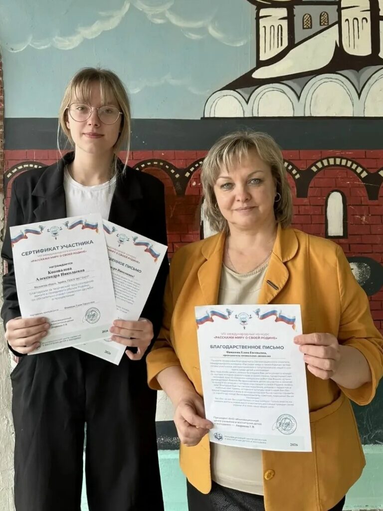 Студентка группы ТГ‑512 «Туризм и гостеприимство» Коновалова Александра приняла участие в международном конкурсе «Расскажи миру о своей Родине»