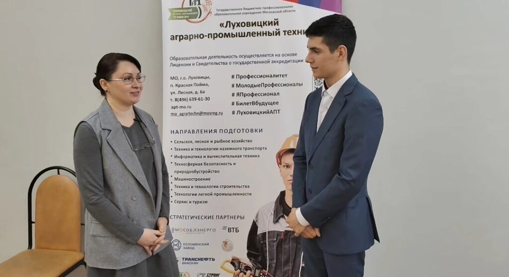 18 апреля 2026 года, в рамках мероприятий Дня открытых дверей для школьников г.о.Зарайска, в Луховицком аграрно-промышленном техникуме команда амбассадоров Профессионалитета из числа студентов техникума специальности «Туризм и гостеприимство» рассказали приглашенным школьникам городского округа Зарайск о федеральном проекте «Профессионалитет», его приоритетах и возможностях в техникуме.